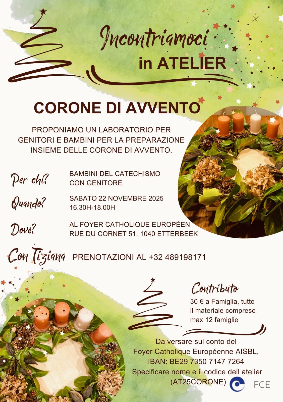 Per l’atelier è richiesta un’iscrizione di €30,00 a famiglia da versare sul conto del Foyer Catholique Européen AISBL,