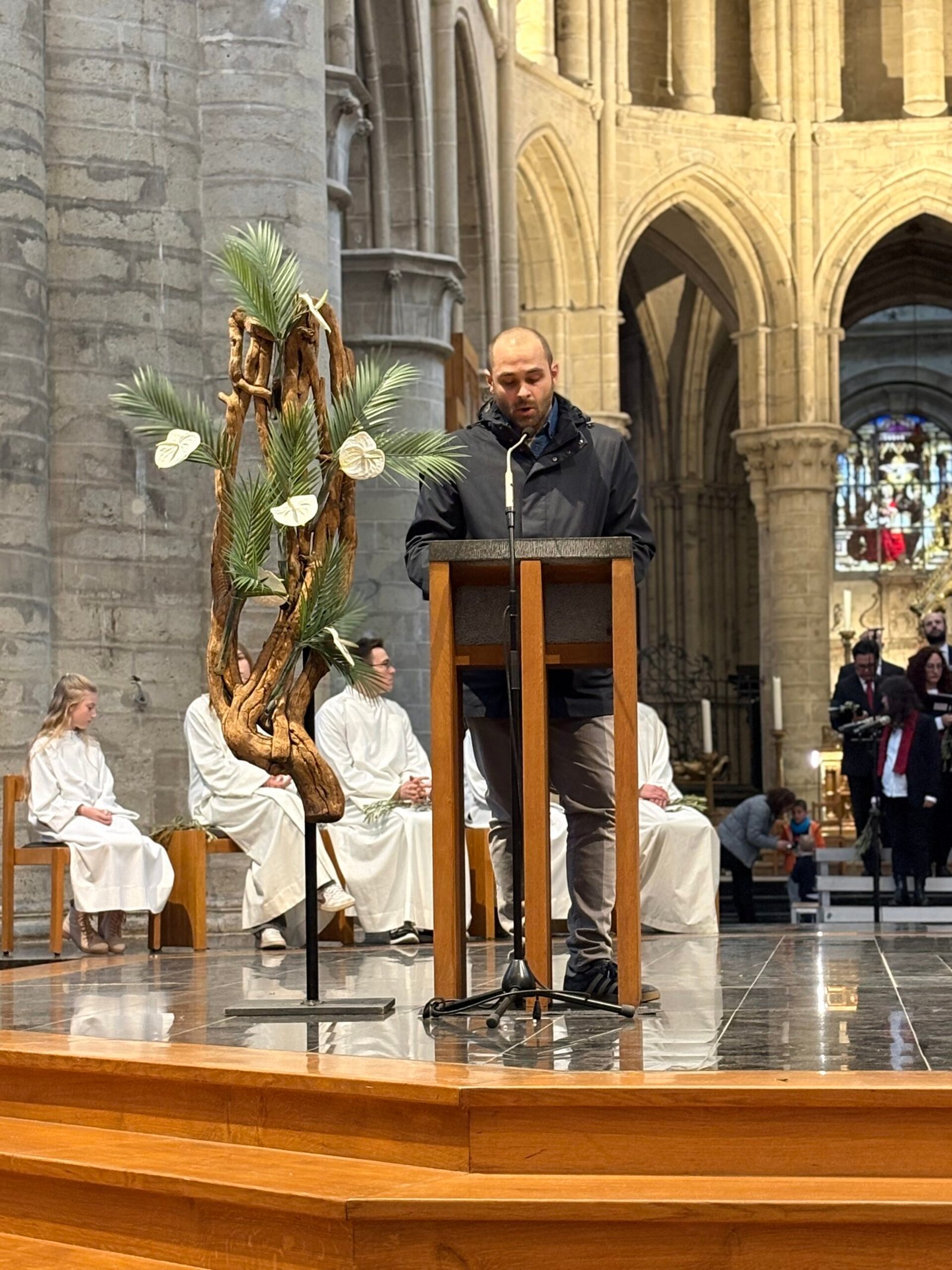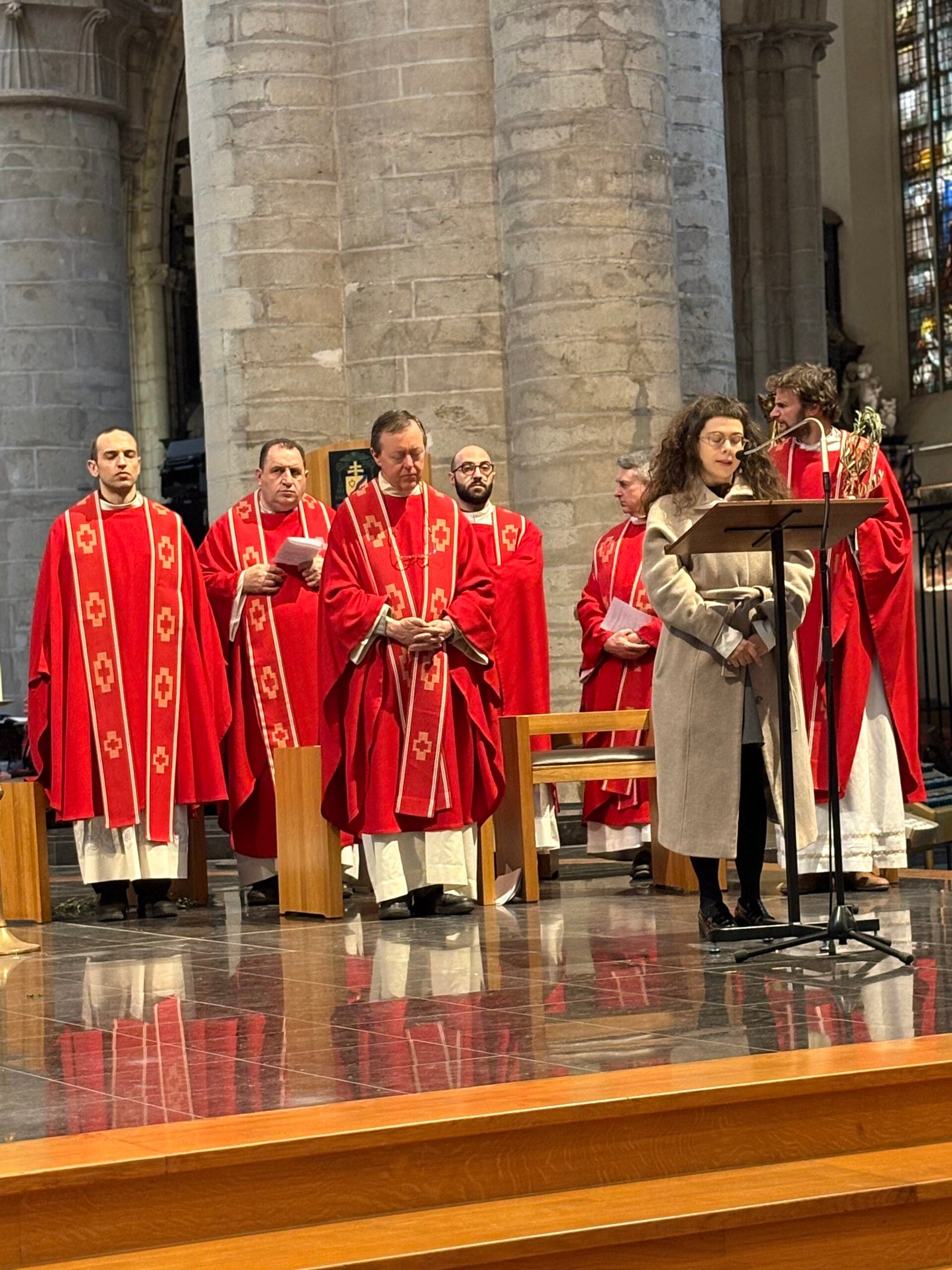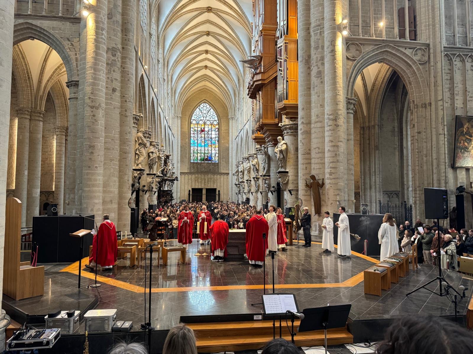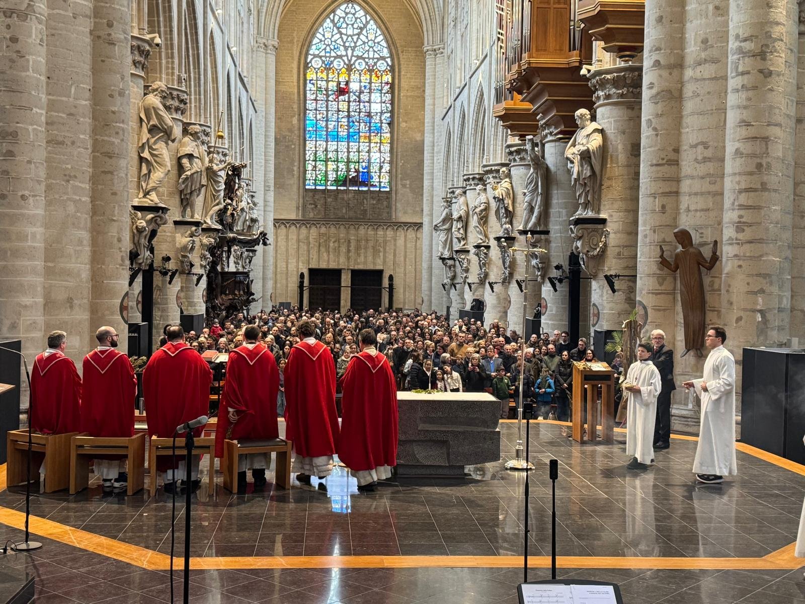 Impugnando il biblico simbolo della pace, rami di ulivo arrivati per l’occasione da un benefattore sin dalla Sicilia, più di 1200 persone si sono date appuntamento e si sono incontrate nella cattedrale di Bruxelles la Domenica delle Palme; la comunità italiana si è ritrovata così per celebrare insieme la memoria dell’ingresso di Gesù a Gerusalemme. La liturgia è stata presieduta da Don Claudio Visconti, coordinatore della pastorale italiana della diocesi di Bruxelles, con altri sei sacerdoti, tra cui il vicario episcopale Eric Vancraeynest.